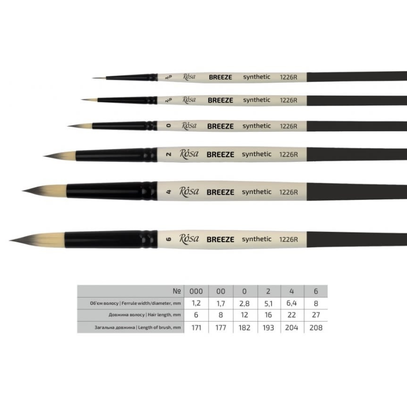 Serie BREEZE mix media- Los pinceles son hechos de pelo sintético fino y suave, son ideales para trabajar con pintura acrílica y también se pueden utilizar para acuarelas y gouache. El pelo suave, pero elástico, de un color beige claro con puntas gris oscuro mantiene bien su forma antes y después de mojarse, y es fácil de controlar mientras se trabaja. Permite pintar detalles y líneas muy finas
