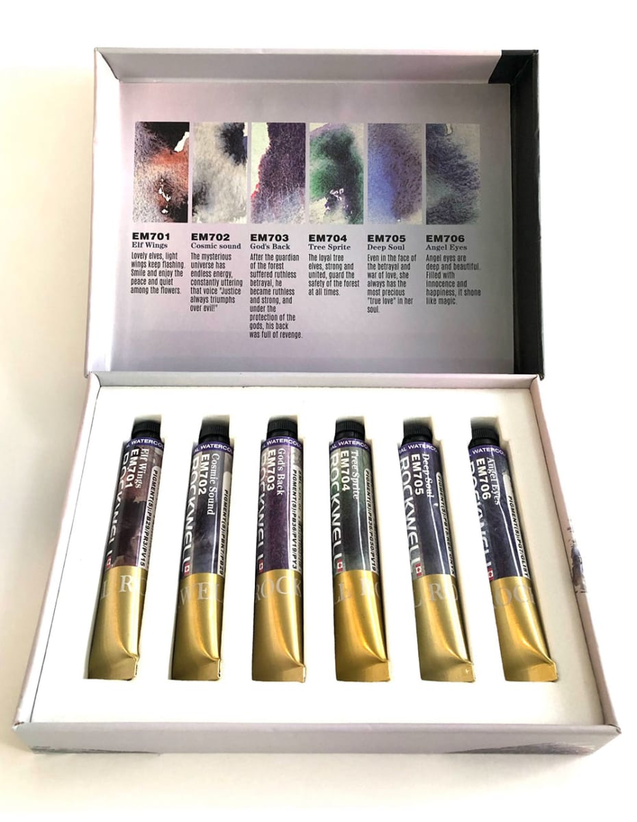 El Set de acuarelas  minerales Charm 1 creado por  Rockwell Canada contiene 6 tubos de 8ml cada uno .